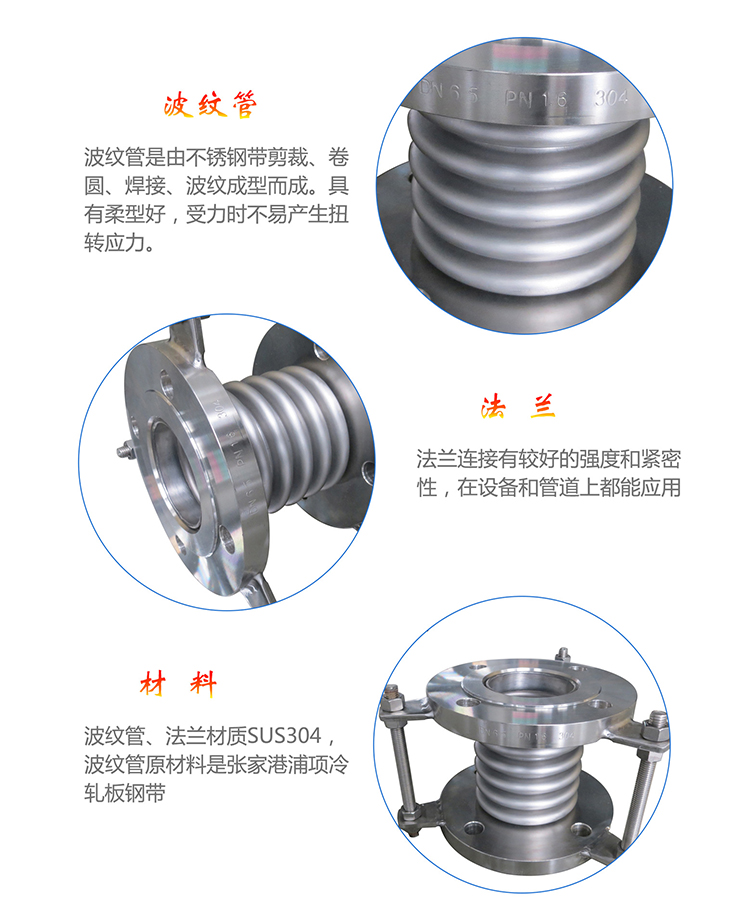 1.金屬軟管整體采用1Cr18Ni9Ti不銹鋼材料制成,具有較強的耐腐蝕能力。