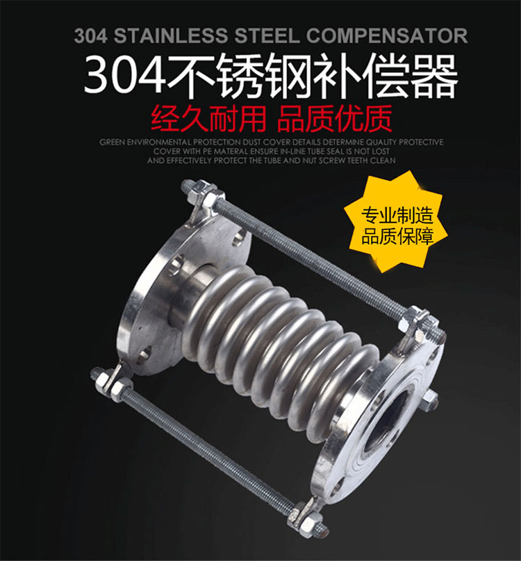 不銹鋼波紋補償器的優(yōu)點優(yōu)點是降低工程損耗低、節(jié)能、防腐、絕緣性能好、使用壽命長的優(yōu)點。不銹鋼波紋補償器的使用可以比玻璃鋼保護層降低25%,所以很多人喜歡用不銹鋼波紋補償器連接。熱損耗低,節(jié)能不銹鋼波紋補償器導熱系數低,遠低于以往使用的管道保溫材料,是其他材料保溫效果的4-9倍左右,可以更大程度上節(jié)約能源。.防腐,使用壽命長,因為不銹鋼波紋補償器可以與其他鋼管緊密結合,防止空氣和水分進入,可以達到良好的仿佛效果。而且材質是不銹鋼,保證了防腐效果。同時周圍的發(fā)泡孔是封閉的,吸水性小,可以大大提高使用壽命。